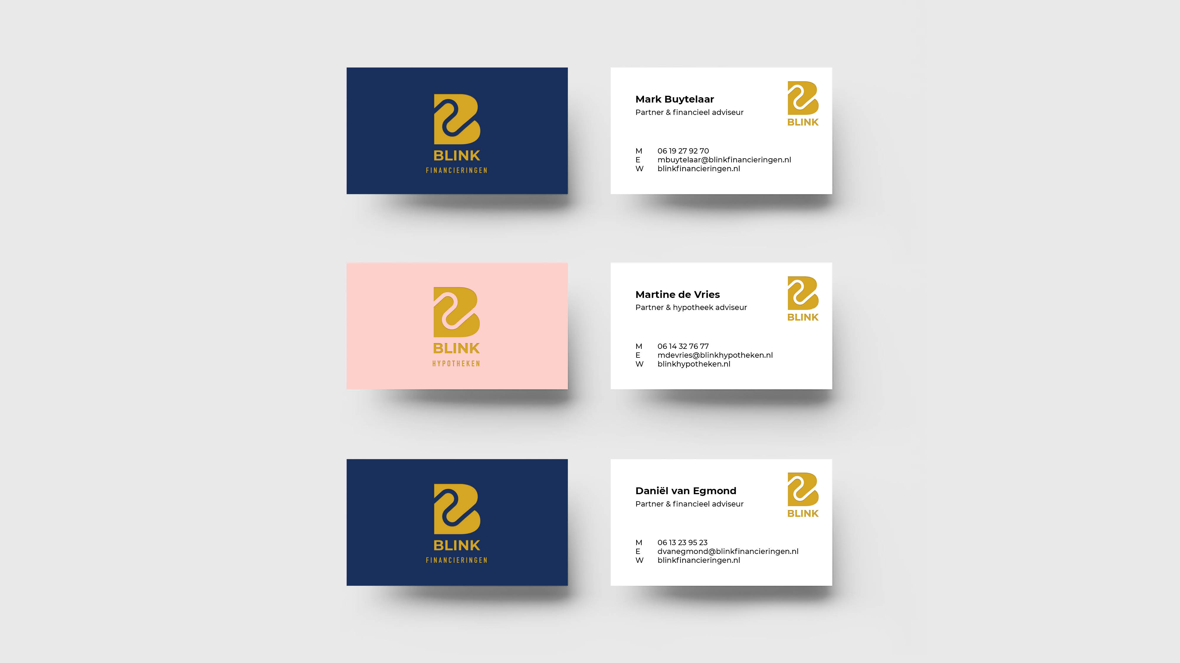 Voor BLINK Hypotheken en Financieringen heb ik de huisstijl ontworpen. Een ‘B’ waarin twee handen elkaar ontmoeten.